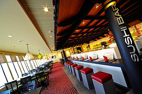 Dining facilities onboard include seven restaurants and 12 bars. Italian food is served at the Bella Donna Restaurant and Asian food at the East Restaurant. Burger and wrap creations, grilled steaks and salads can be found at the California Grill. Rossini, Buffalo Steak House and Sushi Bar restaurants are the other dining venues.