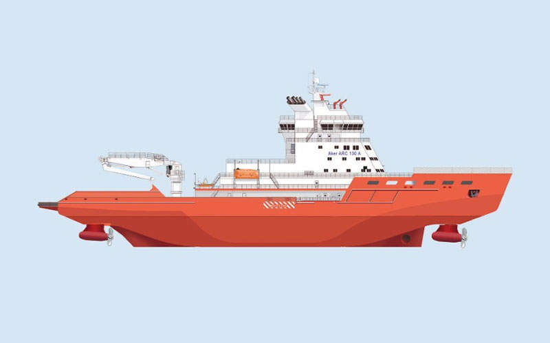 The conceptual design for the Alexander Sannikov is an enhancement over the Aker ARC 130 icebreaker concept, which was originally developed for the Finnish Transport Agency. The new design, named Aker ARC 130A, includes more powerful propulsion and enhanced ice strengthening.