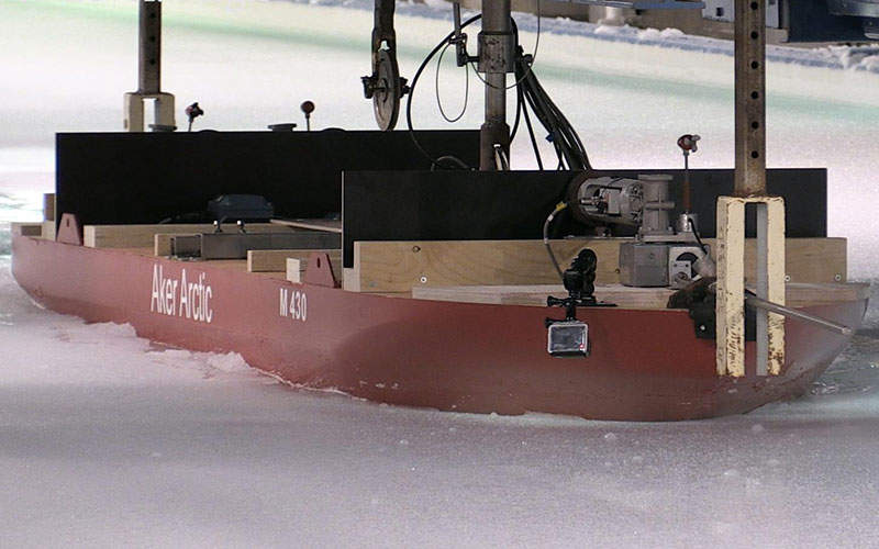 The pilot design of the vessel has been successfully tested in the initial model ice trails in the ice basin in August 2015.
