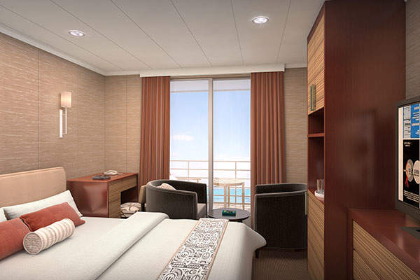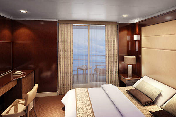The sun deck will feature 12 superior deluxe suites, two deluxe suites and two royal suites. The pool region will have eleven premium suites, three deluxe suites and two royal suites. The veranda deck will feature ten premium suites, two junior suites, and two royal suites, whilst the boat deck will have 12 staterooms and two royal suites.