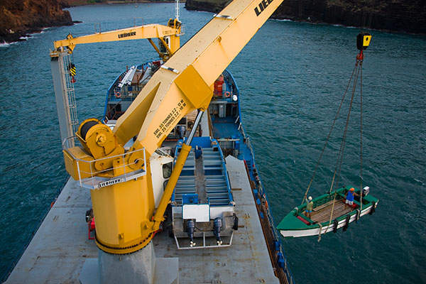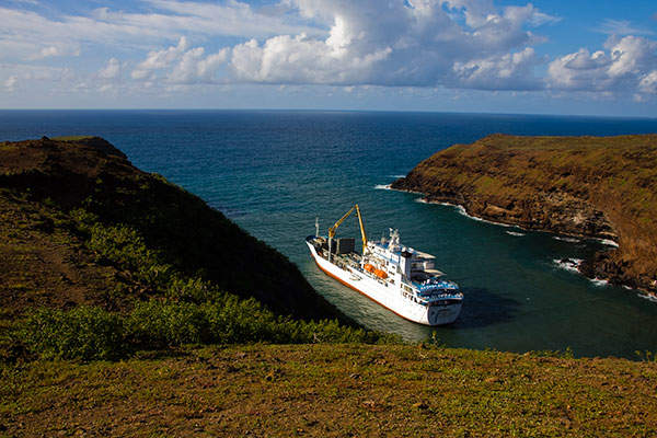 "Unlike other cruise ships, half of the deck space towards the bow is dedicated to the carrying of food, fuel, and other supplies that will be delivered monthly to the islands of the Marquesas."
