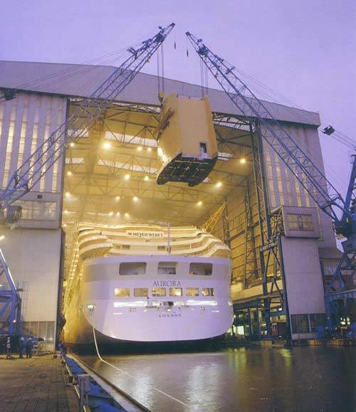 Built by Meyer Werft in Germany, the Aurora was delivered to P&O Cruises in April 2000. The Aurora has an overall length of 270m and of 242.6m between perpendiculars. It has a moulded beam of 32.2m and a 33.6m maximum beam. Its draught is 7.9m. It has an air draught of 52m and a height of 115m. The Aurora has a gross tonnage of 76,152, a net tonnage of 40,037t and a deadweight of 64,450t.