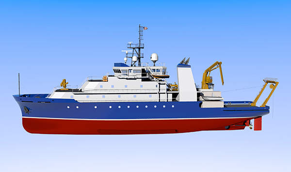 Technologically advanced features of the vessels include underwater acoustic positioning systems, a unique hull form to prevent bubbles from entering into the acoustic sensor zone, and a central cooling system to provide HVAC.