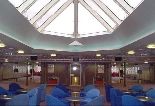 The centrum foyer has a central skylight, with concealed fluorescent lighting around its base, and full depth windows port and starboard that extend into recesses above the deck to maximise light. Noise levels do not exceed 70dBA in the passenger areas and 65dBA in the wheelhouse.