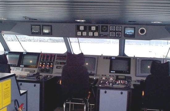 Equipment on the bridge includes Litton radars interfaced to an Anschutz gyrocompass, C Plath magnetic compass and one of two Litton LMX 400 gps sets and an ISIS 2500 integrated alarm and assessment system from Litton Marine Systems.