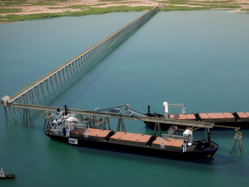 The vessels will be loaded by a conventional ship loader, capable of loading up to 11,500tph. The ship loader is capable of loading the ore on both sides of the wharf, and will be situated on a purpose-built wharf at the end of a 2.8km trestle jetty.
