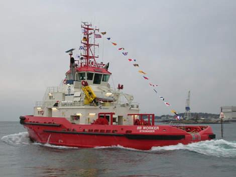 The BB Worker tug is one of five newly developed, highly sophisticated tug vessels operated by Buksér og Berging, the Norwegian tug and salvage company. The tugs were developed and outfitted by the Norwegian shipyard Moen Slip at Kolvereid in Norway.