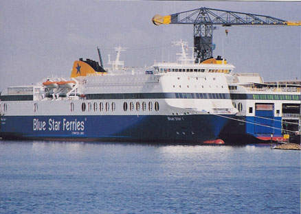 The two ferries – Blue Star 1 and 2 – operate in the route from Patras (Greece) to Ancona (Italy). They are owned by Owner Strintzis Lines Shipping and operated by Blue Star ferries, and were launched within only 14 weeks of each other. The Blue Star ferries have an overall length of 176.095m and a length between perpendiculars of 160.575m, with a beam of 25.7m. They have a design draft of 6.350m, a depth main deck of 9.4m, and a depth to deck 5 of 15.1m.