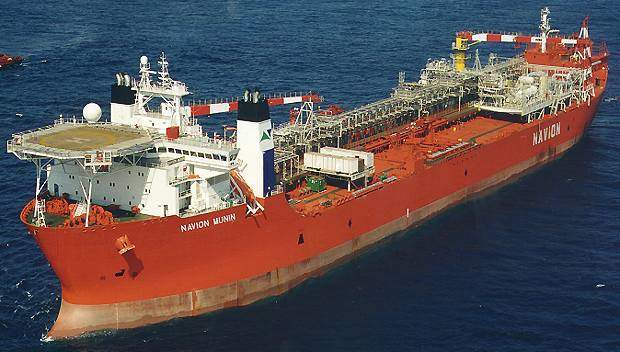 The 101,220dwt Navion Munion was built at Samsung Heavy Industries in South Korea under the auspices of the Det Norske Veritas classification society. She has a double hull and storage capacity for 640,000 barrels of oil. Offloading to a shuttle tanker is by way of a floating hose over the stern.