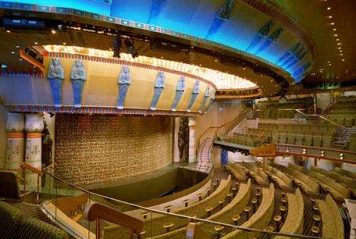 The room also features big-screen televisions and tabletop gaming machines. In front of this is the large club cool jazz bar, a card room (monarch’s room) and the pharaoh’s palace. This is the main show lounge and stretches over three decks. It seats 1,170 guests.