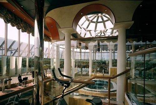 Deck 11 (sports deck) is an open deck with a jogging track. Surrounding the atrium on deck 12 (sky deck) is the ship’s observation balcony.