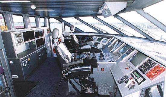 The navigation equipment is similar to that installed on Jonathan Swift, the Austal auto ferry delivered to Irish ferries. Both catamarans have Ergopod trackerballs incorporated in the armrests of the captain’s and first officer’s seats for easy manipulation of information on the radar and ECDIS displays.
