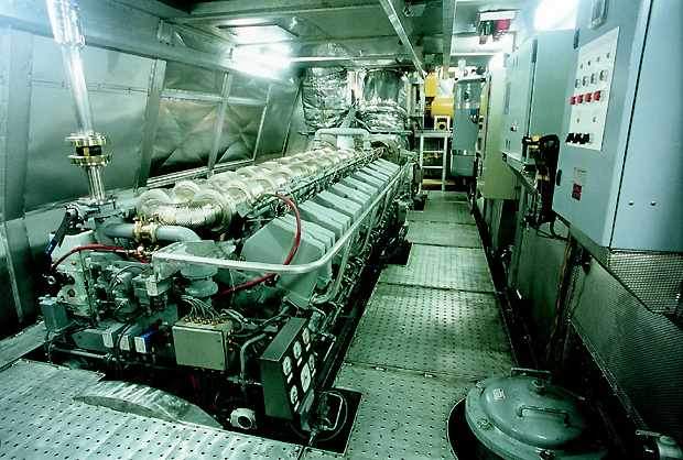 The vessel is powered by four Ruston 20 RK270 conventional medium-speed diesel engines that reach 7080kW each. Each engine drives a transom-mounted waterjet (Lips LJ145D) through a Renk ASL60 reduction gearbox. The custom-designed Lipstronic jet control system provides, apart from steering and reversing, the option of thrust vectoring and autopilot. The waterjets give the Cat Link IV a two-way average speed of 48.2 knots, or 43.0 knots laden. Two 230kW Caterpillar generators in each hull feed associated independent main switchboards and disconnect in an emergency.