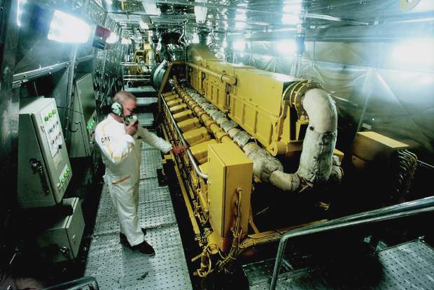 Two 230kW Caterpillar generators in each hull feed associated independent main switchboards, capable of disconnection in an emergency.