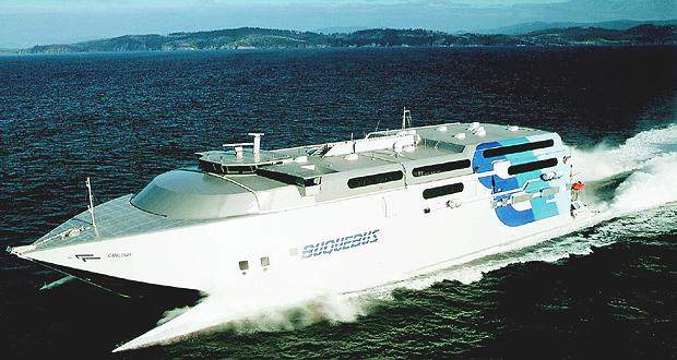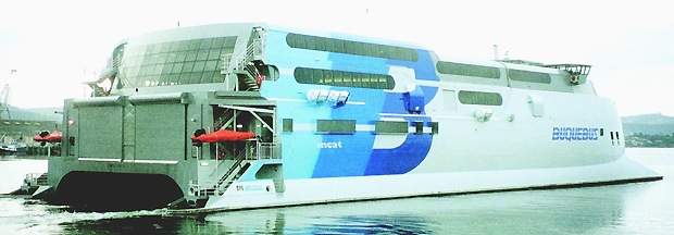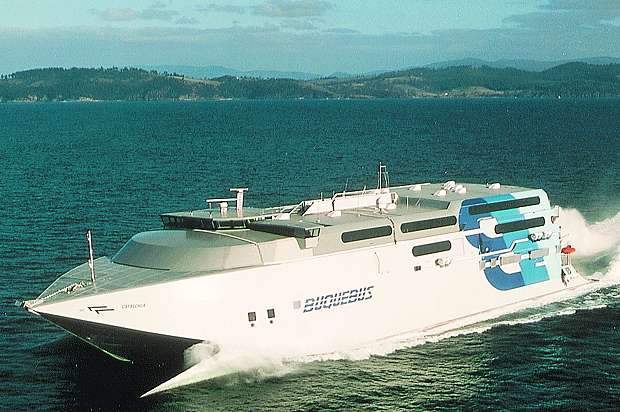 The Catalonia is one of a number of wave-piercing catamaran ferries built by Incat at their yard in Hobart, Tasmania. In June 1998, the Catalonia broke the transatlantic record to gain the Blue Riband, travelling 1015 nautical miles in 24 hours at an average speed of 38.87 knots. This record was subsequently taken by Cat-Link V, another of Incat’s catamarans. Catalonia is operated by Buquebus in Spanish waters between Barcelona and Mallorca.