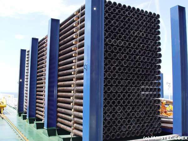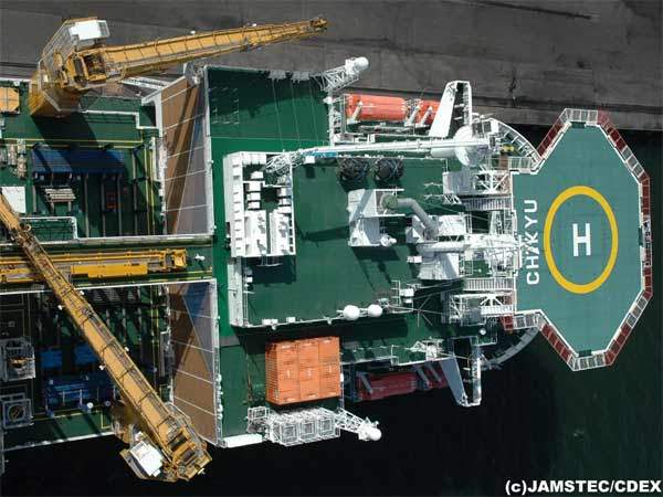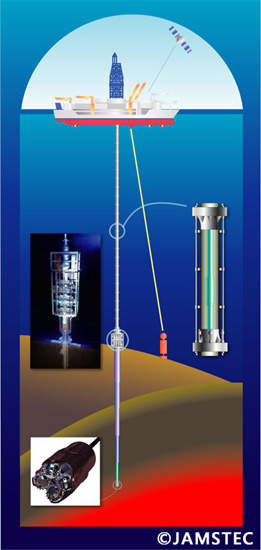 Chikyu uses the riser drilling system for conducting upstream oil and gas industry activities. The equipment and material include a riser pipe, drill pipe, downhole measurement tools and devices, and an artificial drilling vessel. In addition, a blow out preventer ensures safe drilling in unexpected high pressure flows of oil and gas and other fluids from the well.