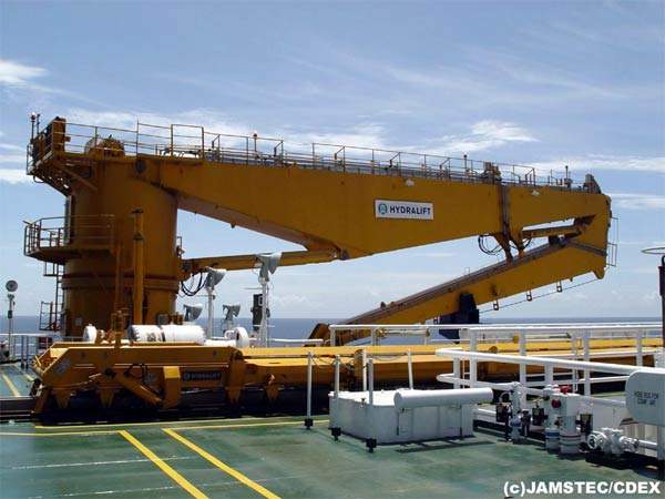 The Chikyu is a scientific drillship which was designed to operate in water depths in excess of 2,500m. It incorporates a range of facilities that enable it to drill up to 7,000m below the sea bed. This makes it one of the world’s deepest drilling vessels. By comparison, the US deep-sea research ship Joides Resolution achieved a hole of 2111m.