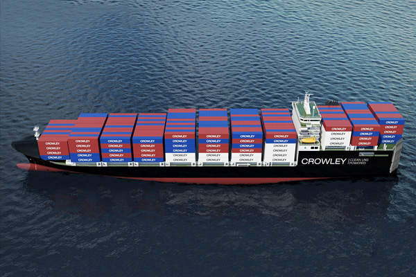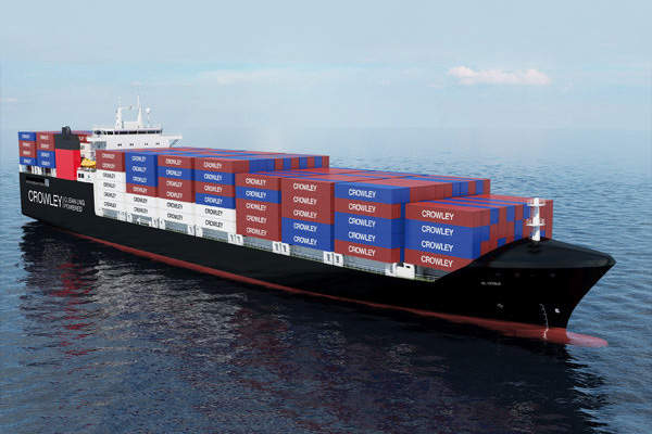 The ConRo vessel operates under the Jones Act trade and transports containers and vehicles between the US and Puerto Rico.