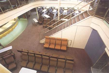There are two passenger levels with the larger main deck level being slightly raised aft. Stairwells each side aft and ramps forward provide passenger access from the vehicle decks, although there is a lift for the disabled. Gates on the open deck areas aft allow foot passengers board directly into the accommodation level. Total passenger capacity is 776. Passenger facilities include full-length bar, self-service cafeteria, large shop, infant facilities and children’s play area. The interior design was commissioned from MBS Project Management. There are two large skylight domes located above the central atrium.