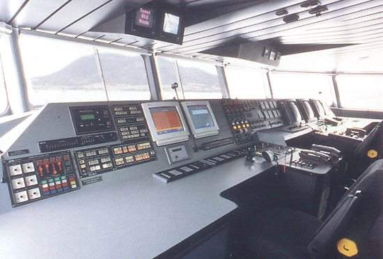 Condor Express has a full-width bridge accomodating both the engineer's and navigator's workstations.