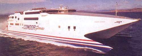The Condor Express is operated by Condor Ferries on the route between Poole, on the Dorset coast of England and Guernsey/Jersey in the Channel Islands. It is one of a number of wave piercing car ferries that have been constructed at Incat’s yard in Hobart,Tasmania.