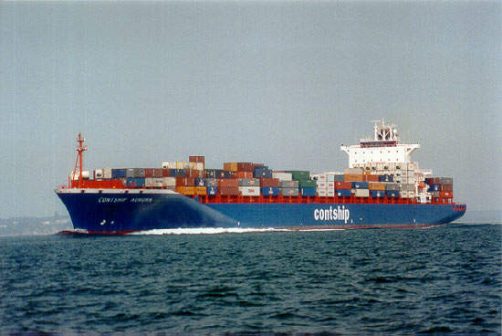 This Contship Aurora was ordered to fulfill part of a circumnavigation route sailing eastbound via Suez and returning via Panama to the eastern seaboard of the USA and back to Europe. There will also be a westbound reversed service which its sister vessels will participate in.