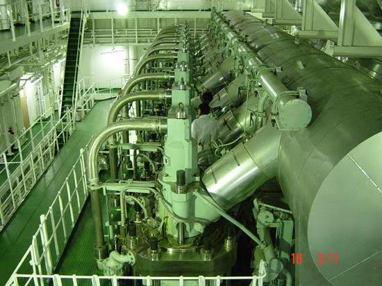 Its main engine is a Sulzer model 9RTA96C-B unit, manufactured in Korea by the HSD Engine Company. It has an output of 69,360bhp at 102rpm or 62,940bhp at 98.5rpm. This is directly coupled to a Hyundai fixed pitch propeller. The nickel aluminium bronze propeller has a diameter of 8.5m and is driven at 102rpm.
