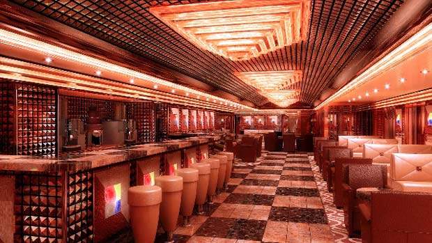There is also the Cafe Sugar and Chocolate bar, an indoor coffee bar serving hot beverages, cakes, chocolate and pastries. Bar areas include Grand Bar Mirablis, Alcazar, Vanilla, Tabc Blonde and Delle Delizie.